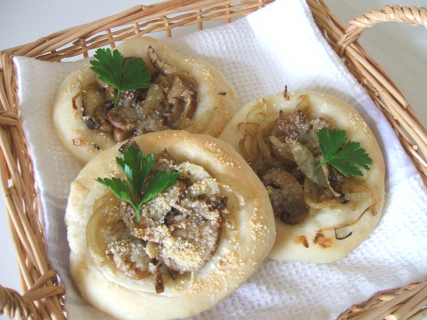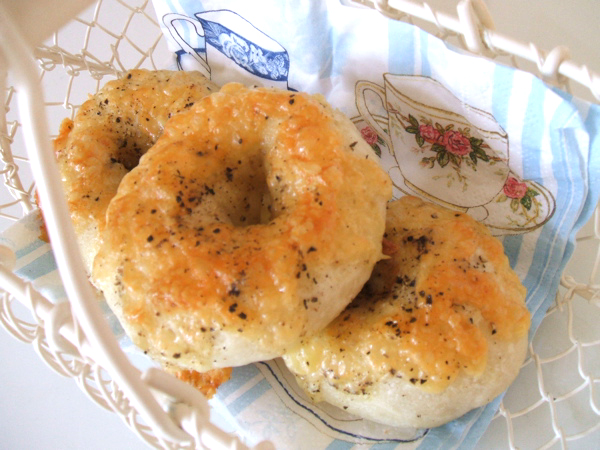 再度発酵後、砂糖入りの湯で両面を茹で、上にチーズ等を のせて焼き上げます。