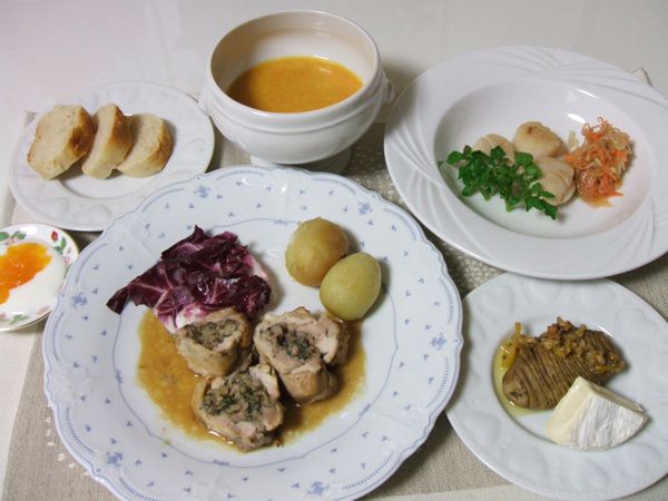 赤チコリ きのこを詰めた若鶏もも肉のロースト