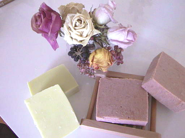 ある石けんだそうです。もう一つはピーチローズ石けんでパプリカで色をつけました。